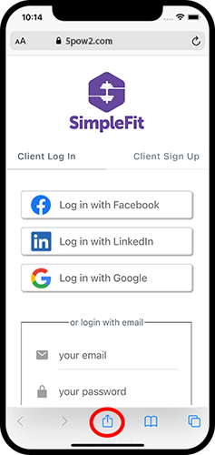 The SimpleFit client app can be installed to your iPhone from the SimpleFit website in 3 steps. After being installed it will appear alongside your other apps.