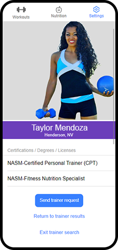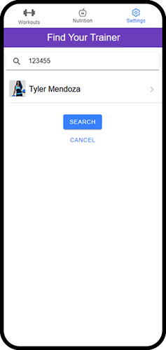 A button to find your trainer is on both the Workout and Nutrition pages.