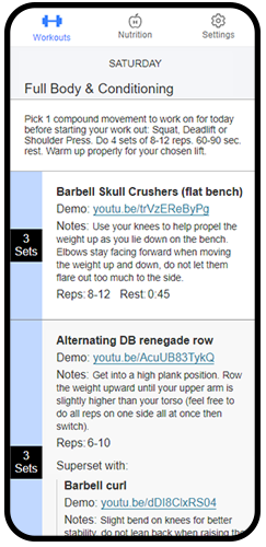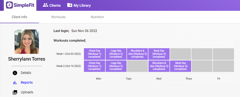 During these dates clients can mark off workouts as completed and enter specific weight/reps done for a strength exercise. This data gets sent to your dashboard for client reporting.