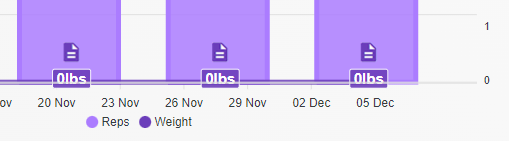 Please note; if a client has not entered any weight information for an exercise (for example, a bodyweight movement) the weight will equal '0' and simply display as a flat line at the bottom of the chart.