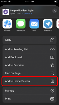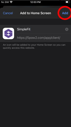 The SimpleFit client app can be installed to your iPhone from the SimpleFit website in 3 steps. After being installed it will appear alongside your other apps.