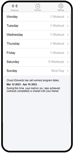 If your trainer has set program dates for your workout training, this information is shared with your trainer during your program.