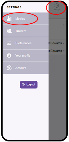 Your recorded metrics history for workout movements can be found by clicking on Settings and choosing Metrics.