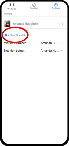 A button to find your trainer is on both the Workout and Nutrition pages.